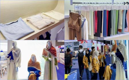 INDO INTERTEX是東南亞最大的貿(mào)易展,也是紡織和服裝行業(yè)最受期待的年度盛會(huì),匯集了數(shù)千家參展商,集中展示世界級(jí)的制造和技術(shù)解決方案。本次展會(huì),華峰化學(xué)以專業(yè)、創(chuàng)新的品牌形象,輔以開放式的展位設(shè)計(jì)精彩亮相,并將熱帶植物元素和穆斯林文化融入其中。面料的展品包括抗菌氨綸、酸性可染氨綸、超耐氯氨綸、黑氨綸等功能性千禧?氨綸系列產(chǎn)品,以及生物基氨綸和再生氨綸等環(huán)保型千禧?氨綸系列產(chǎn)品,面料的應(yīng)用覆蓋了瑜伽服、休閑服、牛仔褲、居家服和運(yùn)動(dòng)服等領(lǐng)域。