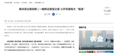 浙江在線11月28日訊(見習(xí)記者 祝依凡 記者 翁宇君)“小K小K,調(diào)整成會(huì)議模式……”話音剛落,窗簾逐漸閉合,燈光減弱,投影儀自動(dòng)開啟。11月下旬,溫州瑞安華峰科技園,在和一塊塊智能面板的互動(dòng)中,浙江在線記者開啟了一場創(chuàng)新的循跡之行。一塊家用開關(guān),8.6cm*8.6cm,小小空間背后,藏著怎樣的智慧?穿梭于華峰瑞享智能設(shè)備制造有限公司的生產(chǎn)線,記者找到了答案。