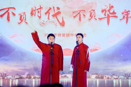 鏡頭一轉(zhuǎn),同樣由重慶基地選送的相聲節(jié)目《都怪他們》,詼諧幽默、引人入勝,在一唱一和、一捧一逗中昭示了員工成長(zhǎng)發(fā)展的路徑:“都怪他們”是推責(zé),“不怪他們”是擔(dān)當(dāng),正是每一位華峰員工把任務(wù)目標(biāo)扛在肩上、抓在手上、落實(shí)在行動(dòng)上,才有了“華峰速度”和“華峰奇跡”!