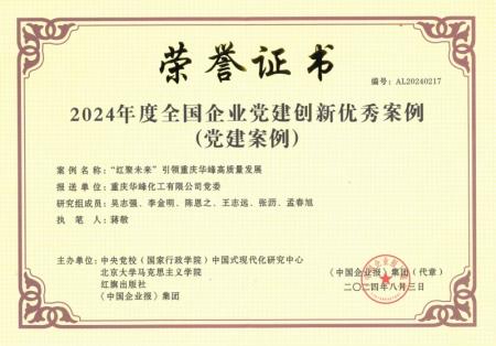 日前,由中央黨校中國式現(xiàn)代化研究中心等單位主辦的2024全國企業(yè)黨建(案例)研討會(huì)暨第四屆企業(yè)黨建創(chuàng)新優(yōu)秀案例發(fā)布儀式在北京舉辦。會(huì)議隆重舉行了2024年度全國企業(yè)黨建創(chuàng)新優(yōu)秀案例發(fā)布儀式,重慶華峰黨委“‘紅聚未來’引領(lǐng)重慶華峰高質(zhì)量發(fā)展”的黨建案例成功入圍。