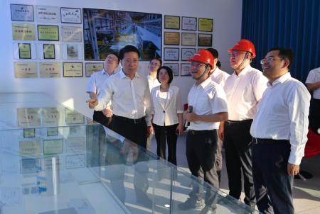 在公司形象展廳,陳國(guó)楨圍繞企業(yè)概況、生產(chǎn)經(jīng)營(yíng)、產(chǎn)品應(yīng)用、產(chǎn)業(yè)鏈發(fā)展及創(chuàng)新研發(fā)等情況作了詳細(xì)匯報(bào)。