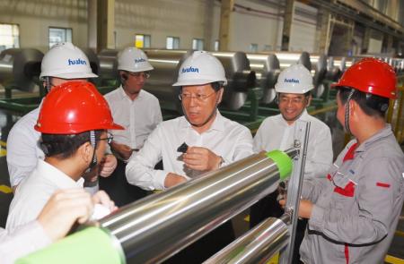 在認(rèn)真聽取介紹后,江敦濤對(duì)華峰鋁業(yè)近年來(lái)取得的發(fā)展成績(jī)表示贊許,勉勵(lì)華峰鋁業(yè)要堅(jiān)持以科技創(chuàng)新為引領(lǐng),不斷提高產(chǎn)品附加值和核心競(jìng)爭(zhēng)力,充分發(fā)揮龍頭企業(yè)“頭雁作用”,引導(dǎo)帶動(dòng)更多產(chǎn)業(yè)鏈上下游企業(yè)集聚發(fā)展。
