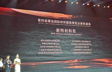 3月18日—20日,第四屆潮汕國際紡織服裝博覽會在汕頭國際會展中心盛大啟幕。此次展會以“歸潮”為主題,吸引了眾多行業(yè)巨頭齊聚一堂。首次參展的華峰化學(xué)股份有限公司,憑借千禧?多款氨綸材料及特色展品,在展會上大放異彩,成功攬獲主辦方頒發(fā)的“新特材料獎”。?