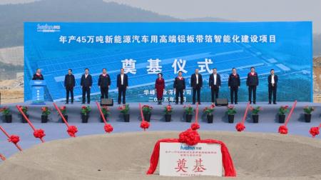 4月9日上午10時56分,隨著華峰鋁業(yè)董事長陳國楨宣布“年產(chǎn)45萬噸新能源汽車用高端鋁板帶箔智能化建設(shè)項目”正式開工,現(xiàn)場禮樂齊鳴、掌聲雷動,與會領(lǐng)導(dǎo)嘉賓共同執(zhí)鍬,為奠基石培土。