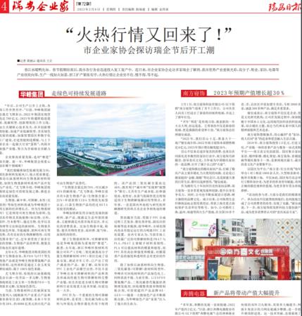 “年后,公司生產(chǎn)已步上正軌,各項(xiàng)工作井然有序。”日前,華峰集團(tuán)副總裁尤飛鋒表示,2022年集團(tuán)實(shí)現(xiàn)營收近700億元,2023年將遵照穩(wěn)進(jìn)提質(zhì)、低碳轉(zhuǎn)型、創(chuàng)新增效的工作主線,加大關(guān)鍵核心技術(shù)攻關(guān),補(bǔ)齊創(chuàng)新增效短板,加速產(chǎn)業(yè)低碳轉(zhuǎn)型,夯實(shí)綠色發(fā)展的底板,加強(qiáng)智慧園區(qū)和數(shù)字化工廠建設(shè),打造智能制造模板,與上下游企業(yè)一起做大行業(yè)“蛋糕”,鞏固并做強(qiáng)產(chǎn)業(yè)鏈,努力為幸福瑞安貢獻(xiàn)力量。